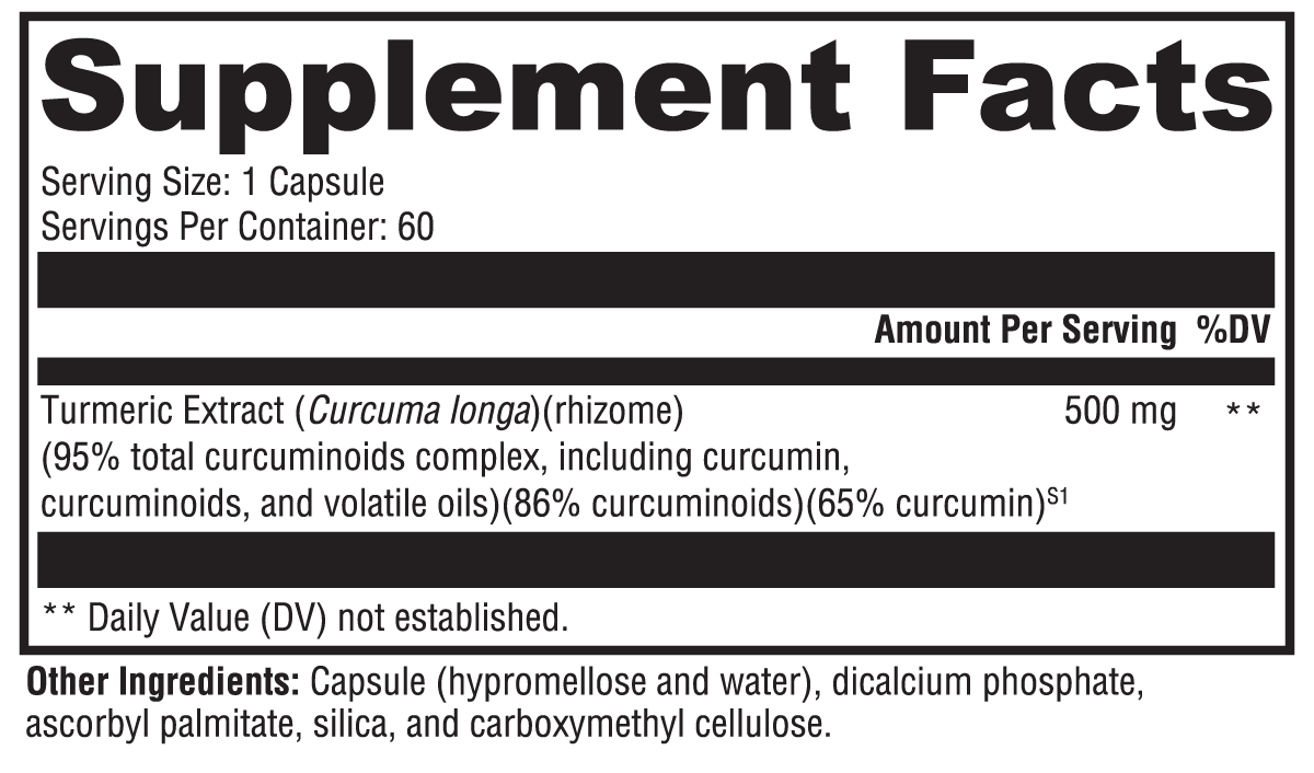 Bio-Curcumin-95 features BCM-95®—a 100% pure turmeric extract standardized to curcumin, demethoxycurcumin, bisdemethoxycurcumin, and essential oils of turmeric rhizome. This natural composition optimizes bioavailability and reflects true turmeric identity to deliver optimal health benefits. BCM-95 has been extensively studied and shows broad efficacy without the use of phospholipids, excipients, additives, carriers, nanotechnology, or bioenhancers.*