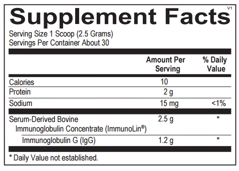 IgG Support is the only purified, dairy-free source of immunoglobulin G (IgG) available as a dietary supplement. Serum-derived bovine immunoglobulins (SBI) provide the highest IgG concentration available for GI and immune challenges where allergens are a significant concern. Pure IgG helps to maintain a healthy intestinal immune system by binding a broad range of microbes and toxins within the gut lumen. IgG Support provides 1,200 mg IgG in a one-scoop serving