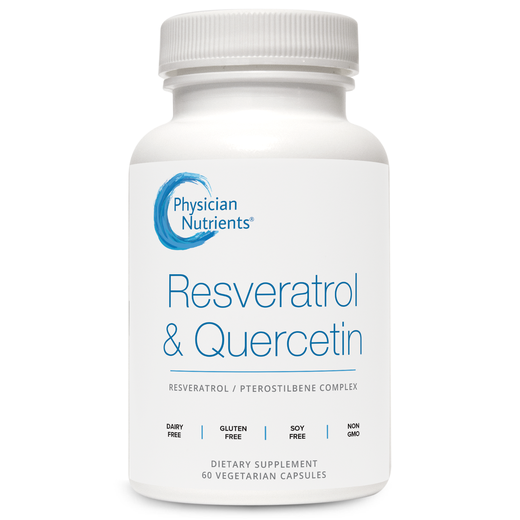 Resveratrol & Quercetin is a powerful antioxidant support that provides a complete bioflavonoid complex with resveratrol, quercetin, and pterostilbene. These three antioxidants work together synergistically. Pterostilbene, a new focus of scientific research, is methylated resveratrol, a bio-optimized form that complements resveratrol and quercetin. These compounds are being extensively studied in the areas of cardiovascular health and aging.*